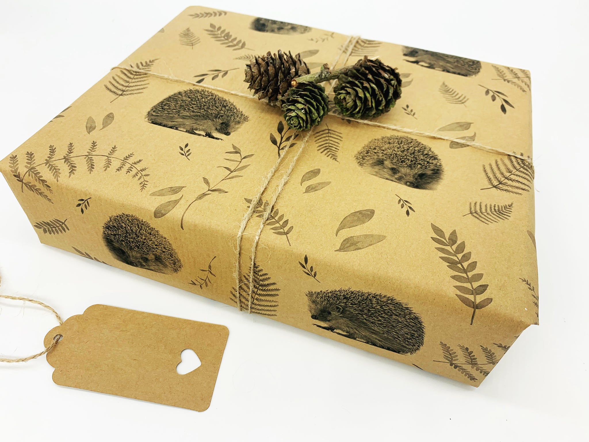 Folded Packs – gift wrap sheet is folded flat into A4 sheets with a 100% recycled and recyclable paper wrap-around sleeve.