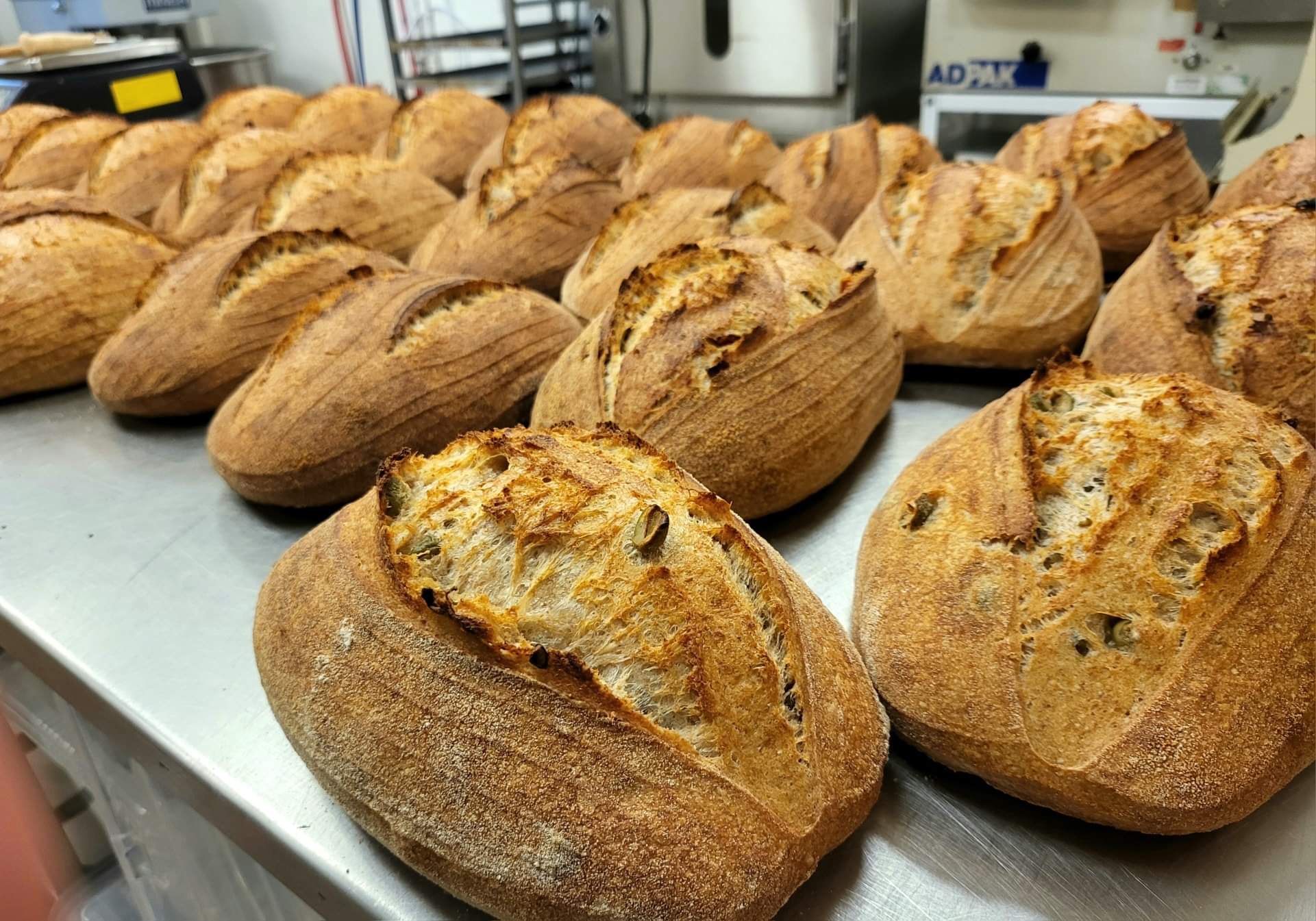 Freshly baked Sourdough, with olives inside.